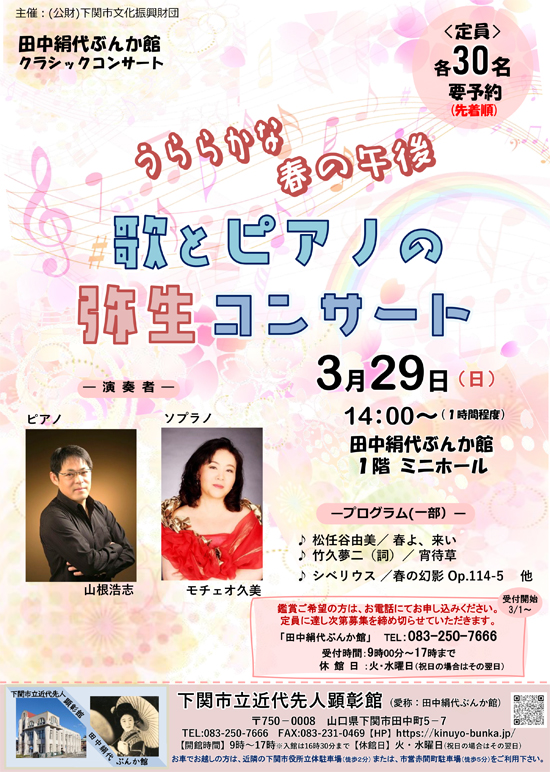 『歌とピアノの弥生コンサート』を開催いたします♪※終了致しました